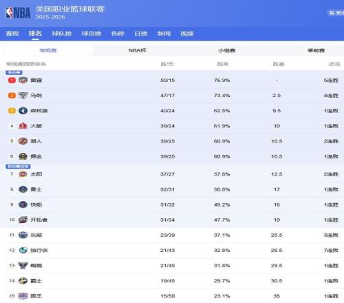 NBA³£¹æÈü¾àÀë½áÊøÔ½À´Ô½½üÁË£¬¸÷¶ÓÔÚÅÅÃûÉϵÄÕù¶áÒ²±äµÃÓú·¢¼¤ÁÒÆðÀ´£¬ÓÈÆäÊǸ÷¸öλÖ㬸÷¸öÇò¶ÓÖ®¼äµÄÕ½¼¨Ò§µÄºÜËÀ£¬Ò»³¡±ÈÈüµÄʤ¸º¾Í×ãÒÔÈöàÖ§Çò¶ÓµÄÅÅÃû·¢Éú±ä»¯£¬Ò²µ¼ÖÂÎ÷²¿ÅÅÃû´ó±äÁ³£º2¶ÓÇÀµÚ1£¬»ð¼ýµôµÚ4£¬ºþÈËÉýµÚ5£¬¿ì´¬Ö±³åǰ8£¡