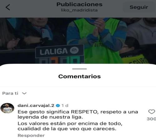 卡瓦哈尔在社媒上回复了一名指责他为塞尔塔传奇鼓掌的用户:“这个举动代表尊重,是对我们联赛传奇的尊重。价值观高于一切,这正是我看到你所缺乏的品质。”