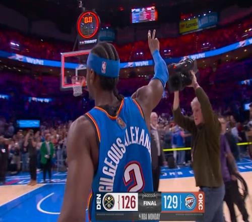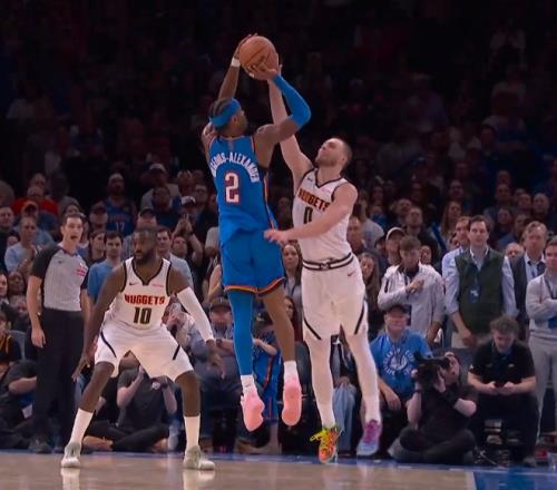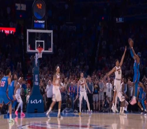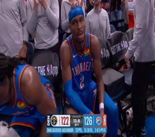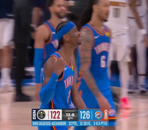 末节13.9秒,亚历山大单打布劳恩,三分干拔命中。掘金122-126雷霆