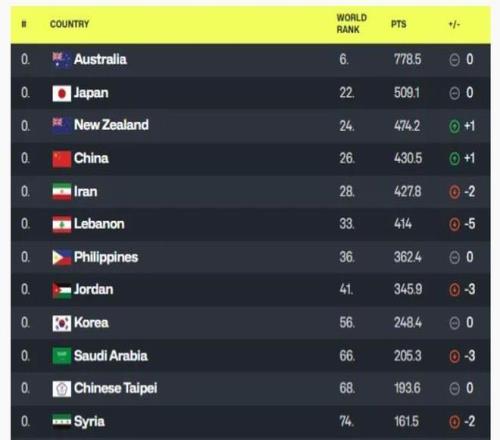 根据国际篮联公布的榜单来看,中国男篮在亚洲区排名第4,世界排名第26,较上一期的榜单提高了1个位次。在亚洲范围内排名前三的分别是澳大利亚男篮、日本男篮和新西兰男篮,韩国男篮仅排在第9位;世界排名前三的国家分别是美国男篮、德国男篮和西班牙男篮,亚洲区第1的澳大利亚男篮排名世界第6。综合来看这个榜单来看还是比较贴合实际的,中国男篮整体实力虽然不如澳大利亚,但是和日本、新西兰等国家差距并不是很大,还有很大的进步空间。