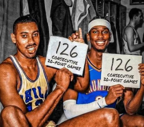 129比126,雷霆队战胜掘金队,亚历山大独得35分9篮板15助攻,力压拿到32分14篮板13助攻的约基奇,率队获胜。至此,亚历山大连续126场比赛拿到20分以上的单场得分,也是追平了NBA名宿张伯伦的纪录。