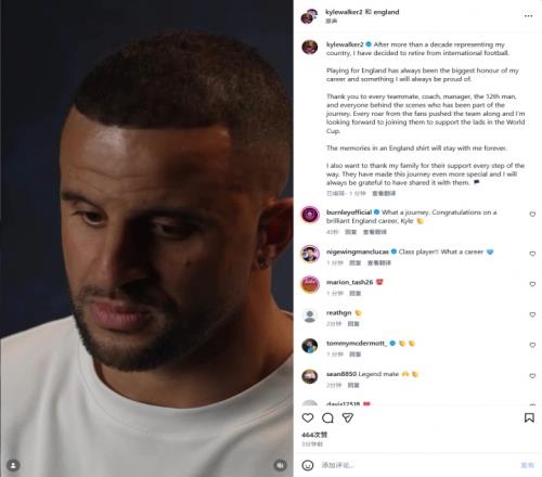 体育播报03月10日宣 官方消息,35岁前热刺、曼城后卫凯尔·沃克宣布,将从英格兰队退役。