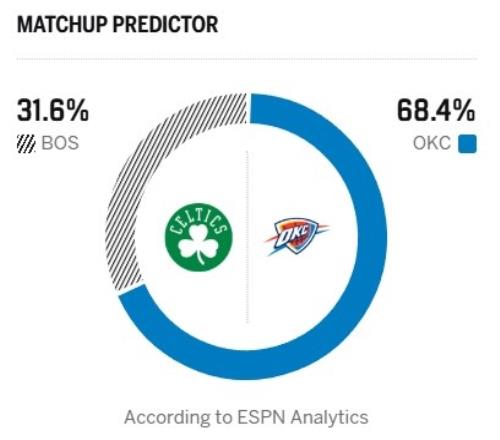 ESPN¸ø³ö±¾³¡Ê¤ÂÊÔ¤²â£¬À×öª¸ß´ï68.4%£¬¿¶ûÌØÈ˽öΪ31.6%¡£