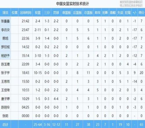°ë³¡Êý¾Ýͳ¼Æ£¬ÖйúÅ®ÀºÖ»ÓÐÒ»ÃûÇòÔ±µÄµÃ·ÖÉÏË«£¬¾ÍÊÇÕÅ×ÓÓî12·Ö6°å£¬ÆäËûÁ½´óÄÚÏßÀîÔÂÈê2·Ö3°å¡¢º«Ðñ3°å1Öú£¬±¾³¡±ÈÈü״̬²»¼Ñ£¬Ò²¸ú±»ÏÞÖÆÓйء£