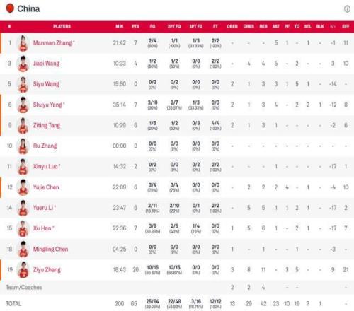 Êý¾Ý·½Ã棬ÕÅ×ÓÓî20·Ö11Àº°å£¬ËýÒ²ÊÇΨһµÃ·Ö³¬¹ý7·ÖµÄÖйúÅ®ÀºÇòÔ±¡£ÑîÊæÓè7·Ö4Öú¹¥£¬º«Ðñ7·Ö6Àº°å£¬ÀîÔÂÈê6·Ö5Àº°å¡£