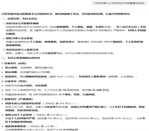 ¶ø¸ÃÅоöÊéÉêÇëÁËδ¹«¿ª£¬¸ù¾Ý¶¹°üÏÔʾ£¬¸Ã·ÖÎöʦй¶δ¹«¿ªµÄÅоöÊé´¦ÓÚÎ¥·¨ÐÐΪ£¬¿ÉÄÜÐèÒª³Ðµ£ÃñÊ¡¢ÐÐÕþÄËÖÁÐÌÊÂÔðÈΣ¬ºóÐøµ±ÊÂÈËҲɾ³ý¸ÃÌõ΢²©ÄÚÈÝ¡£