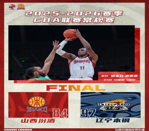 北京时间2026年3月13日19:35,2025-2026赛季CBA联赛常规赛第25轮继续进行,山西汾酒客场挑战辽宁本钢。两队历史上一共交手47次,山西汾酒17胜30负。上赛季两队交手2次,山西汾酒2胜0负;本赛季两队交手1次,山西汾酒1胜0负。本场比赛,山西队开局发挥出色,攻防两端都积极主动,多点开花,很快建立两位数领先优势。下半场未能延续出色的状态,处理球不够坚决,防守也不够明确,并且出现太多失误,最终遗憾失利,全场比赛结束,山西汾酒84:92不敌辽宁本钢。