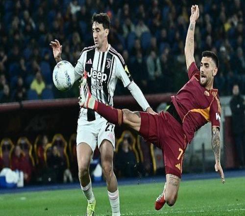 北京时间3月2日,意大利足球顶级联赛第27轮,罗马主场迎战尤文图斯。上半场韦斯利兜射世界波破门。比赛中。视觉...