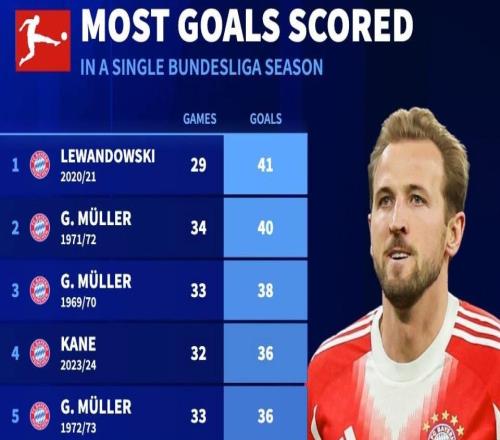 北京时间3月6日,德转列出了德甲单赛季的进球榜,本赛季24场打进30球的哈里-凯恩目前已经位列联赛历史第11位,在...
