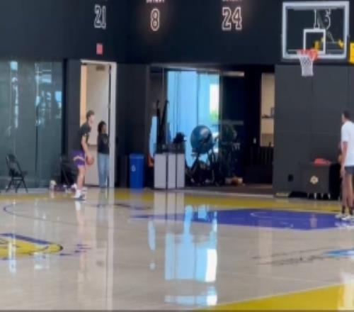 里夫斯训练后脚穿拖鞋尝试罚球三罚不中最后投进一记三分!