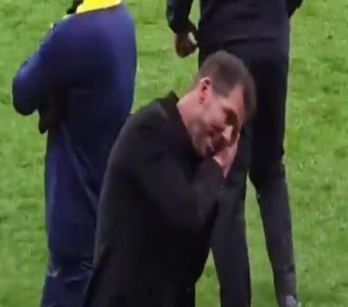 率队淘汰巴萨,西蒙尼赛后在场边做出“晚安”动作