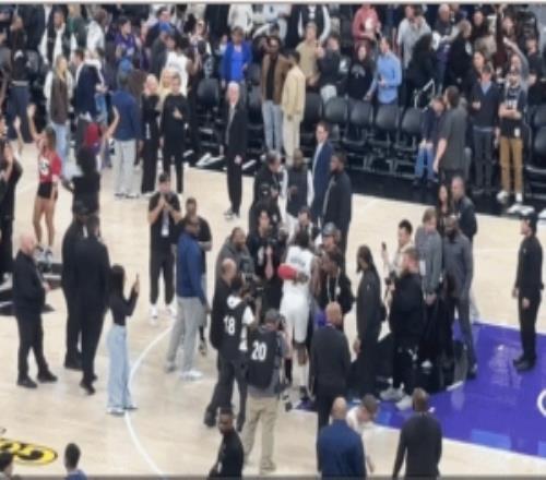 TravisScott现场观战哈登骑士首秀,两人赛后激情相拥