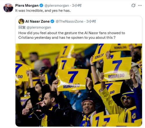 利雅得胜利球迷号:你对昨天胜利球迷声援C罗的举动有何感受?你有没有和你谈过?