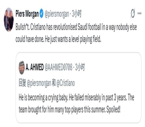 摩根爆粗回应:Bullsh*t,C罗彻底改变了沙特足球这是其他人做不到的,他只是想要公平的竞争环境。