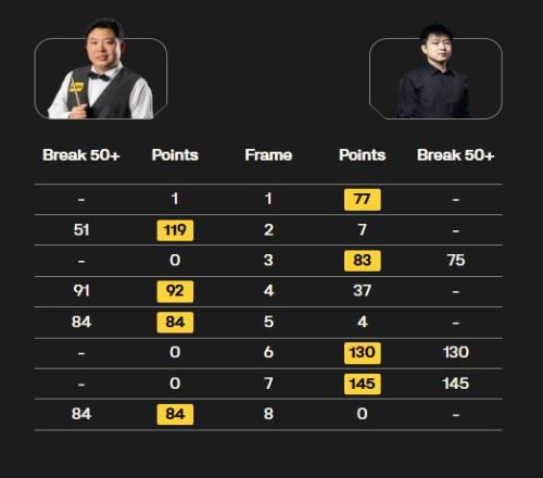 ÔÚµÚÒ»½×¶Î±ÈÈüÖУ¬ÕÔÐÄͯ´ò³öµ¥¸Ë145¡¢130¡¢75·Ö£¬ÆäÖе¥¸Ë145·Ö´òÆÆÁËФ¹ú¶°Ç°¼¸Ìì¸Õ´´ÔìµÄÈüʵ¥¸Ë×î¸ß·Ö¼Í¼£»ÕŰ²´ï´ò³öµ¥¸Ë51¡¢91¡¢84¡¢84·Ö£¬Á½È˽»ÌæÈ¡Ê¤£¬»¥ÏàÁìÏÈ£¬ÕŰ²´ï4-4սƽÕÔÐÄͯ½áÊøµÚÒ»½×¶Î¡£