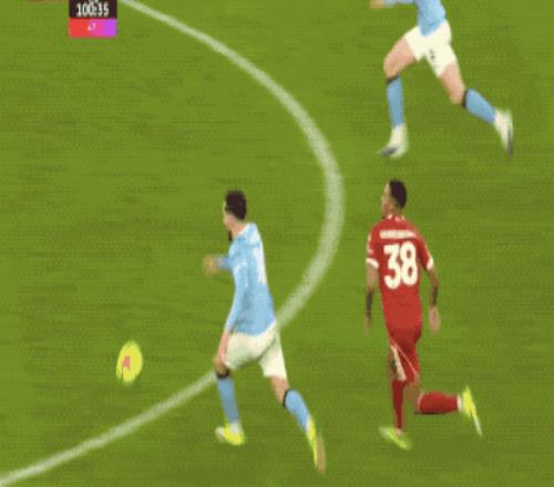 两支球队的部分战术有些重合,那就是后腰游走到边路,第34分钟,罗德里下底传中,哈兰德不停球射门,阿利松注意力集中,将球没收。