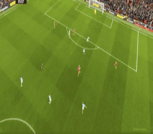 下半场开始后,场上风云突变,利物浦大举压上,曼城越踢越被动。第54分钟,接到萨拉赫的传中,埃基蒂克头球顶偏,错失良机。