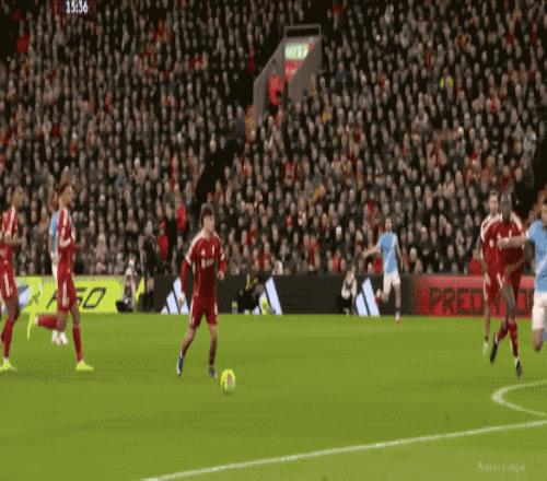 第100分钟,利物浦全线压上,谢尔基中圈附近传球,索博斯洛伊看到空门立即拉拽哈兰德,哈兰德也还以颜色,皮球缓缓滚入球门。