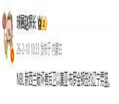 2月10日,CBA圈内悄然炸开一条消息:辽宁男篮正式签下本赛季第七名外援——艾泽亚·布罗金顿。这位来自澳洲NBL新西兰破坏者队的“效率型悍将”,没有华丽的履历,没有耀眼的履历,却用一组近乎冷酷的数据,叩响了四冠王的门扉。