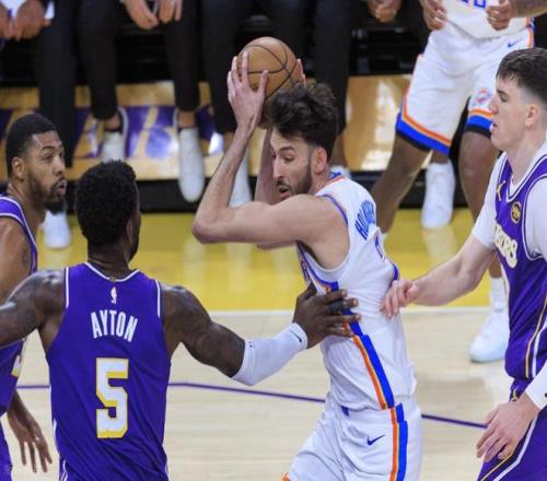 下半场易边再战,第三节上来雷霆又把分差拉开到了两位数,斯玛特三分止血,拉拉维亚三分再中,追到73-76只落后3分,雷霆暂停。回到比赛,湖人又是一波小高潮,一鼓作气成功反超队史7分8分。但雷霆并没有慌乱,而是稳扎稳打,一点点将分差抹平。里夫斯吃到技术犯规,卡鲁索顶着防守投进三分,三节结束湖人91-93落后2分。
