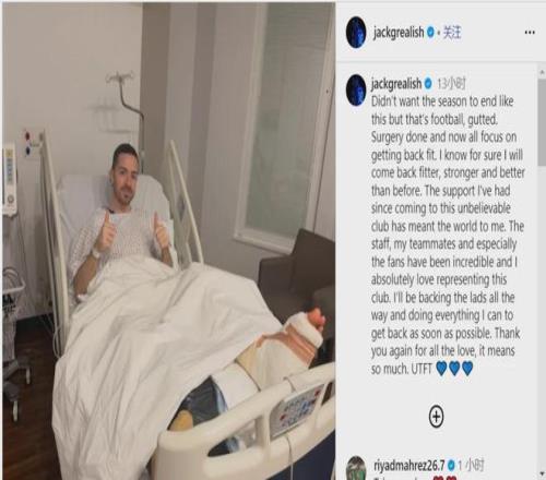 格拉利什通过社交媒体确认他接受了脚部应力性骨折手术。