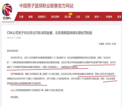 ×òÍí£¬CBA¹«Ë¾¸øÕÔª³öÁËÒ»·Ý´ó·£µ¥£¬¶ÔÕÔî£Í£ÈüÈý³¡+·£¿î50000Ôª£¬Óë´Ëͬʱ£¬±±¾©¶ÓÒ²±»·£¿î50000Ôª¡£