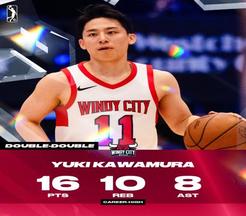 此役,日本球员、公牛双向合同后卫、身高1米73的河村勇辉代表风城公牛出战,他在37分钟的时间里15投4中,三分8中2、罚球5中4,拿下16分10篮板8助攻2抢断,篮板创个人生涯新高。