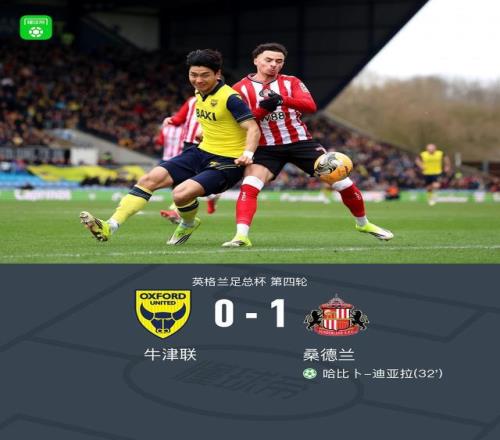 北京时间2月15日英格兰足总杯第四轮,牛津联对阵桑德兰。桑德兰哈比卜-迪亚拉点射破门。最终桑德兰客场1-0击败牛津联晋级。