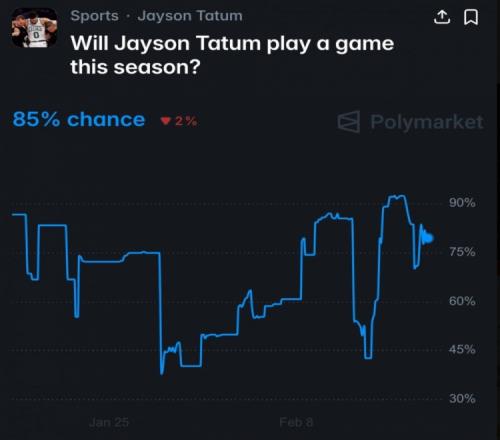 美媒Polymarket预测塔图姆在本赛季复出的概率,高达85%。