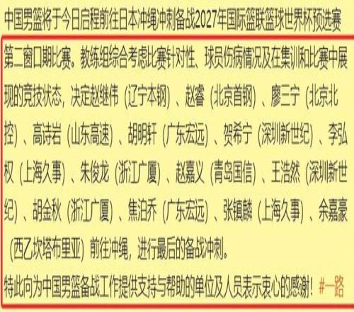 ÆäÖУ¬Õ÷Õ½¹ýÄÐÀºÊÀÔ¤ÈüµÚÒ»¸ö´°¿ÚÆÚ±ÈÈüµÄÇòÔ±ÓÐÕÔ¢ºúÃ÷Ðù¡¢ÁÎÈýÄþ¡¢¸ßÊ«ÑÒ¡¢ºú½ðÇï¡¢Öì¿¡Áú¡¢ÕÅÕò÷룻¸úËæ¹ùʿǿÕ÷Õ½¹ýÑÇÖÞ±µÄÓÐÓà¼ÎºÀºÍÕÔ¼ÎÒ壻ÐÂÈëÑ¡µÄÔòÊÇÕÔ¼Ìΰ¡¢½¹²´ÇÇ¡¢ºØÏ£Äþ¡¢ÍõºÆÈ»ºÍÀîºëȨ¡£ËäÈ»Õâ5ÃûÇòÔ±¿´ËÆÊÇÐÂÈëÑ¡µÄ£¬µ«ÊÇËûÃÇÒªÃ´ÔøÊǹú¼Ò¶ÓÖ÷Á¦£¬ÒªÃ´Ò²Ôø´ú±í¹ú¼Ò¶Ó´ò¹ý±ÈÈü£¬ÒªÃ´¶à´Î²Î¼Ó¹ý¼¯Ñµ£¬¾Ñé¶¼»¹ÊÇÓеġ£±ÈÈç˵ÁÉÀº¶Ó³¤ÕÔ¼Ì࣬Ëû֮ǰÊÇÉ˲¡ÎÊÌâȱϯ¹ý¼¸´Î¡£