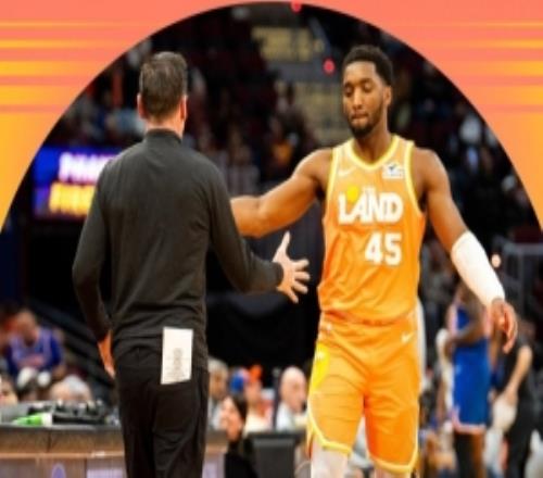 23分5板4助3断!骑士官方赢球海报封面米切尔和阿特金森击掌