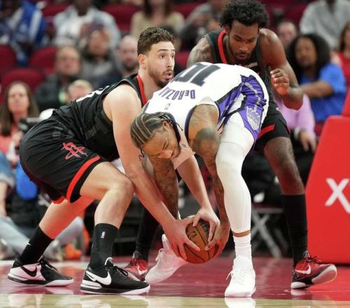 威少与谢泼德在中远距离斗法,德罗赞一级恶意犯规,申京连投带罚得到3分,伊森轰进远投,杜兰特跳投取分,火箭打出了11比0的攻势将分差扩大至30分。克利福德远投命中,半场打完,国王以50比77落后,休斯顿单节以44比28领先。