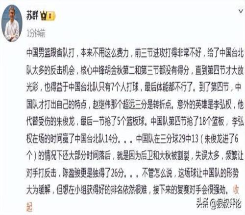 媒体人苏群发文点评: