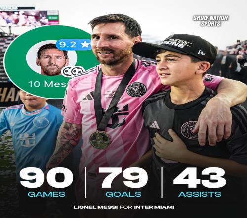 目前梅西在迈阿密国际90场比赛轰入79球,同时梅西还有43次助攻。