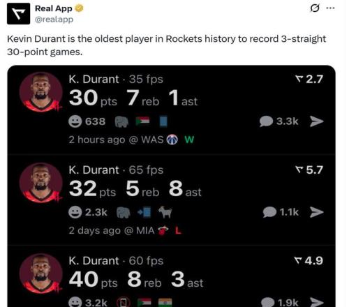 ƾ½èÕâÑùµÄ±íÏÖ£¬¶ÅÀ¼ÌØÒѾÁ¬ÐøÈý³¡ºäÏÂ30+µÃ·Ö±íÏÖ£¬·Ö±ðÊÇ30·Ö¡¢32·ÖºÍ40·Ö£¬Èý³¡ºÏ¿³102·Ö£¬ÈÃ37Ëê155ÌìµÄ¶ÅÀ¼ÌسÉΪ»ð¼ý¶ÓÊ·´´ÔìÕâһ׳¾Ù×îÀϵÄÇòÔ±¡£