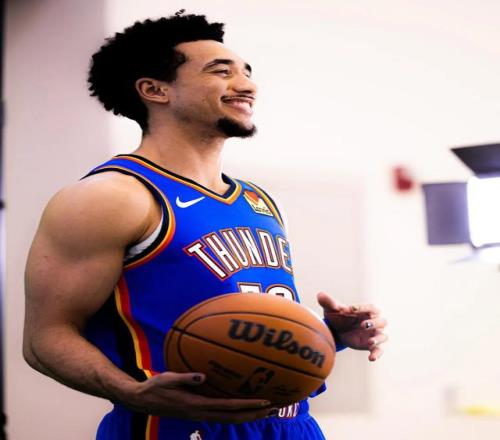 前两天雷霆加时战胜掘金的比赛后,切特-霍姆格伦这么评价拿到14分的新队友麦凯恩。那场比赛,麦凯恩8投6中,三分3中2,关键第四节拿到了8分。