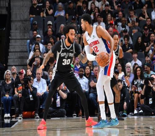 北京时间3月6日,NBA常规赛活塞客场对阵马刺,文班亚马与?怂鼓谕馑烁Ρ硐郑炻泶讨鸩嚼┐22分领先优势。活塞顽强反扑前三节追到差8分,末节马刺重新扩大两位数领先优势,最终马刺121-106战胜活塞,马刺近14战13胜,活塞遭遇2连败。