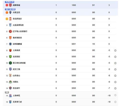 随着蓉城队51深圳新鹏城!中超积分:申花队落后榜首13分