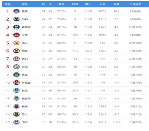 À×öªÓ®Çòºó6Á¬Ê¤£¬Õ½¼¨51ʤ15¸ºÅÅÃûÁªÃ˵ÚÒ»£¬¾ò½ðÊäÇòºó2Á¬°Ü£¬Õ½¼¨39ʤ26¸º£¬ÅÅÃûÎ÷²¿µÚÁù£¬ÂäºóµÚÎåµÄºþÈË0.5¸öʤ³¡£¬ÁìÏÈµÚÆßµÄÌ«Ñô1.5¸öʤ³¡£¬¾ò½ð½ü¶Îʱ¼äµÄÕ½¼¨²»ÀíÏ룬ÅÅÃûÒ²´ÓÎ÷²¿µÚÈýµôµ½µÚÁù¡£