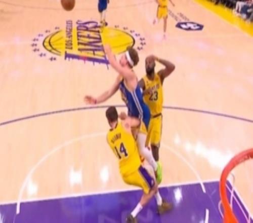 波杰姆斯基行进间撞翻克莱伯&吹进攻犯规勇士挑战成功变阻挡犯规