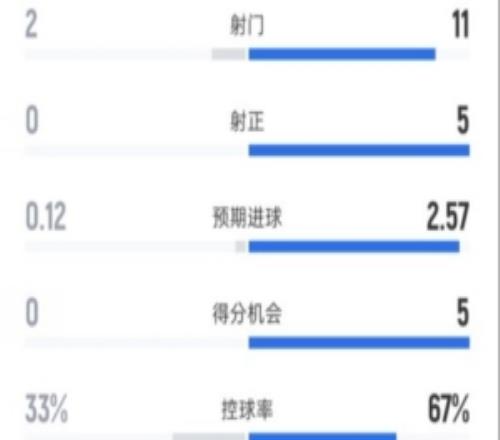 狼队半场03切尔西数据:射门211,射正05,控球率33%67%