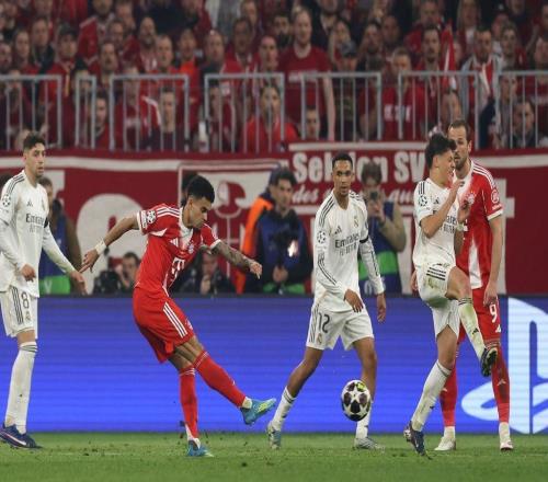 欧冠1/4决赛次回合,拜仁慕尼黑主场4-3逆转击败皇家马德里,成为欧冠淘汰赛历史上第二支至少三次落后仍最终赢球...