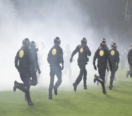 Ô¼60ÃûµÂÀÛ˹¶ÙÇòÃÔÓë30ÃûºÕËþÇòÃÔ»¥ÖÀÑ̻𣬱ÈÈüÖжÏ20·ÖÖÓ