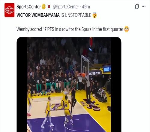 北京时间2月11日,NBA常规赛,马刺大胜湖人。这场比赛马刺球星文班亚马表现非常出色,首节8分钟里就拿到25分,半场1...