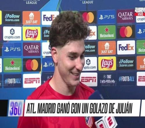 帮助球队在欧冠1/4决赛中客场2-0击败巴萨后,马竞前锋阿尔瓦雷斯接受了Movistar+的采访,此役他通过任意球为球...