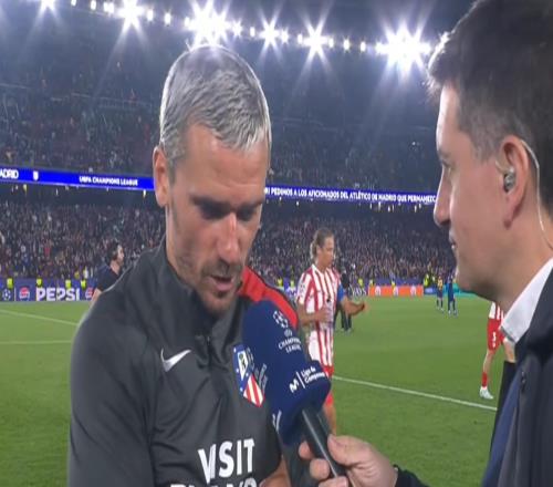 欧冠淘汰赛1/4决赛首回合,马竞客场2-0战胜巴萨,马竞中场格列兹曼赛后接受了采访。恭喜你!谢谢接受采访。这场胜...