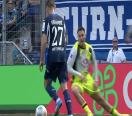 送点+伤退!聚勒打滑倒地被射门击中手臂,霍芬海姆球员点球命中